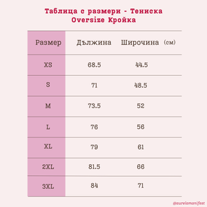 Кройка: Модерен оувърсайз фит (широка кройка). Препоръчваме да провериш таблицата с размери преди поръчка. 📏